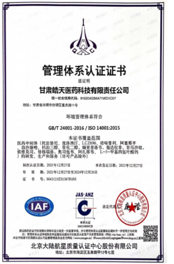 通过ISO14001体系认证